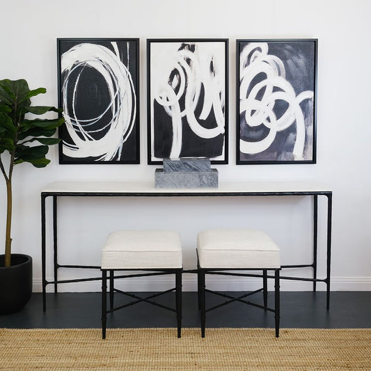 Blanquecina Canvas Painting – Hand-Painted White-on-White Textured Artwork in Black Shadow Box Frame